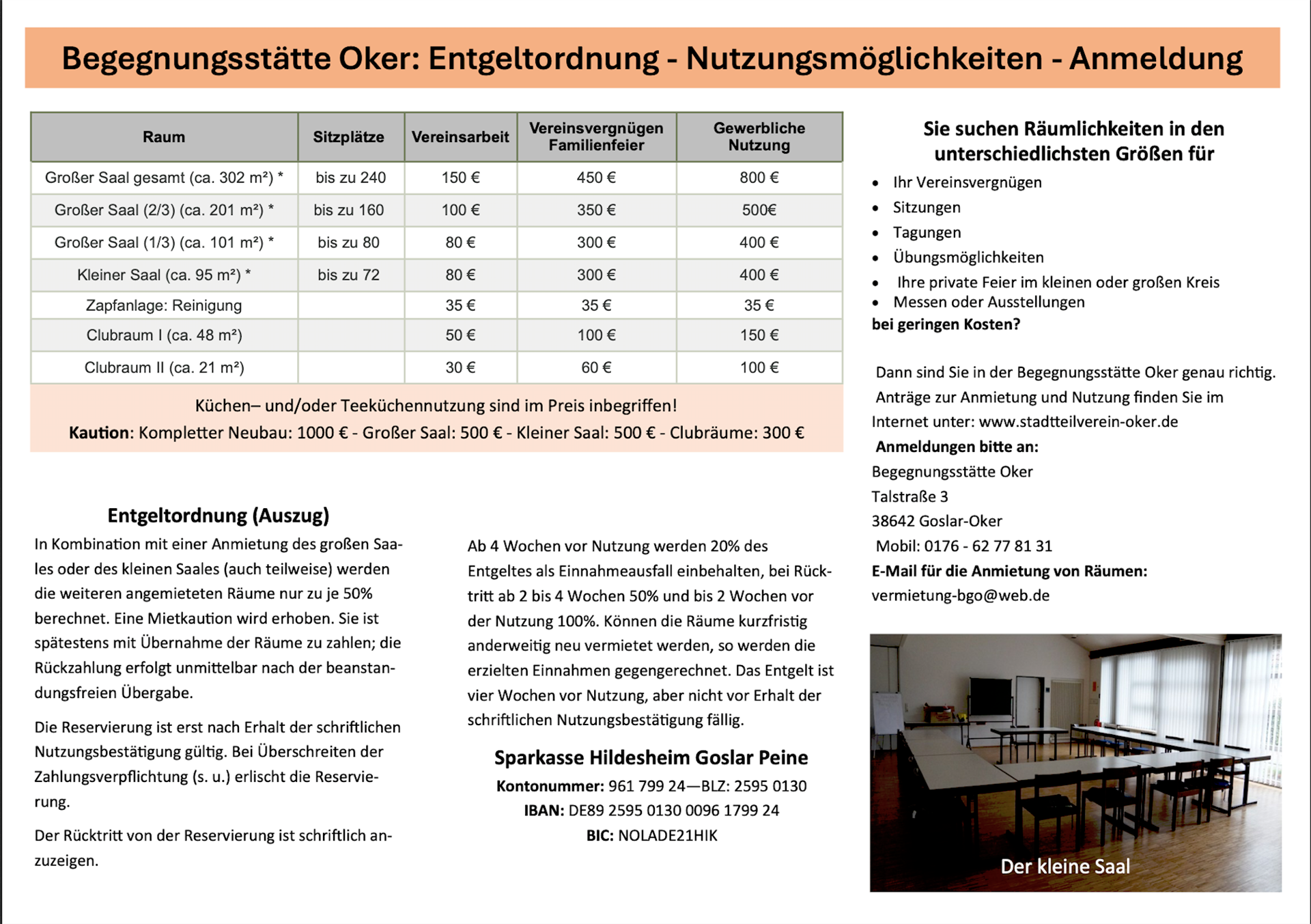 Sonst kann es sehr leicht zu Unstimmigkeiten und fehlerhafter Bereitstellung oder auch Absage kommen, die der Stadtteilverein dann aber nicht zu verantworten hat.