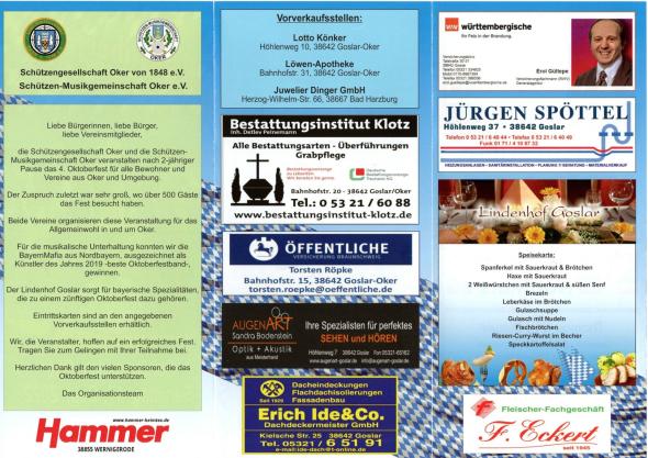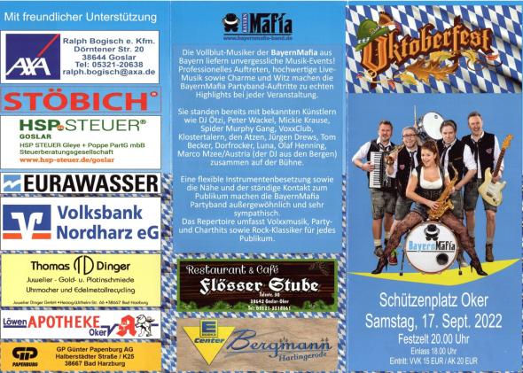 die Schützengesellschaft Oker und die SchützenMusikgemeinschaft Oker veranstalten nach 2-jähriger Pause das 4. Oktoberfest für alle Bewohner und Vereine aus Oker und Umgebung.