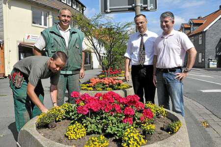 Rechtzeitig vorm Sommerfest haben Mitglieder der Werbegemeinschaft Oker die Blumenkübel am Hundemarkt wieder hergerichtet und für eine blühende Visitenkarte des Ortes gesorgt: