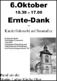 Ablauf:10.30 Gottesdienst12.00 Beginn Erntemarkt12.00 SMG12.00 Beginn Kinderflohmarkt14.00 Unterharzer Musikcorps16.45 Unterhaltungsorchester NH