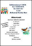 Sehr geehrte Damen und Herren die St.-Konrad-Gemeinde möchte Ihnen mitteilen, dass anlässlich des 60-jährigen Bestehens der St.-Konrad-Kirche in Goslar-Oker unser Jubiläums-Benefizkonzert am Sonntag, dem 23.09.2012, um 16.00 Uhr in der St.-Konrad-Kirche statt findet.