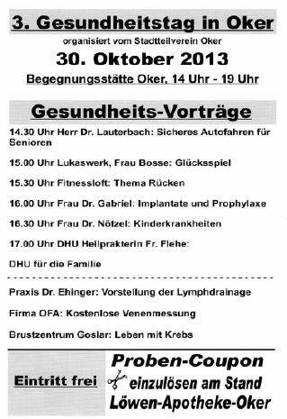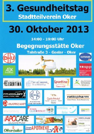 3. Gesundheitstag in Oker organisiert vom Stadtteilverein Oker am 30. Oktober 2013 in der Begegnungsstätte Oker, 14 Uhr -19 Uhr