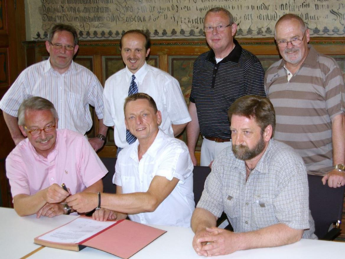 Goslar /Ks. Was für das Amtszimmer des Oberbürgermeisters geplant war, wurde von ihm kurzer Hand in den Sitzungssaal verlegt. "Wir bekommen sonst Probleme mit der Statik", hatte er nicht die zunächst erwarteten ein, zwei Obersten des Stadtteilvereins Oker im Rathaus zu begrüßen, sondern eine ganze Delegation. Am Ende waren acht Okeraner da, trotz Sommer vor der Tür. Auch so demonstriert man, was eine Herzensangelegenheit ist.