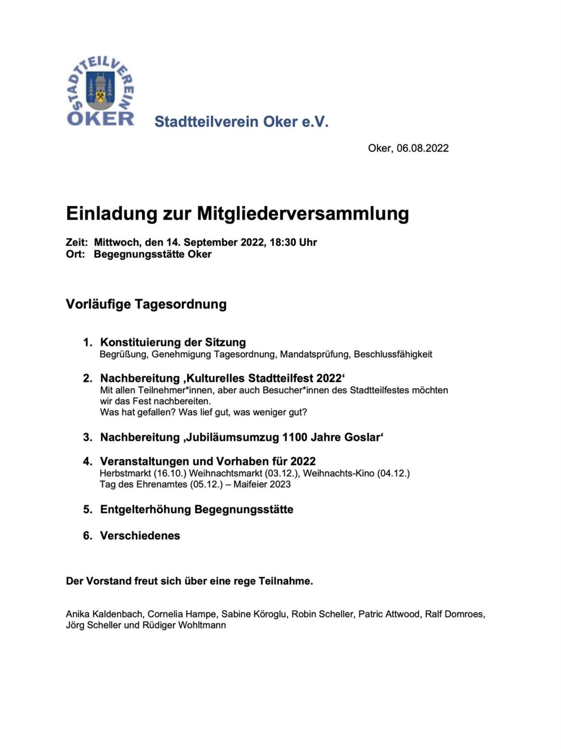 Freundinnen und Freunde des Okeraner Stadtteilvereins!