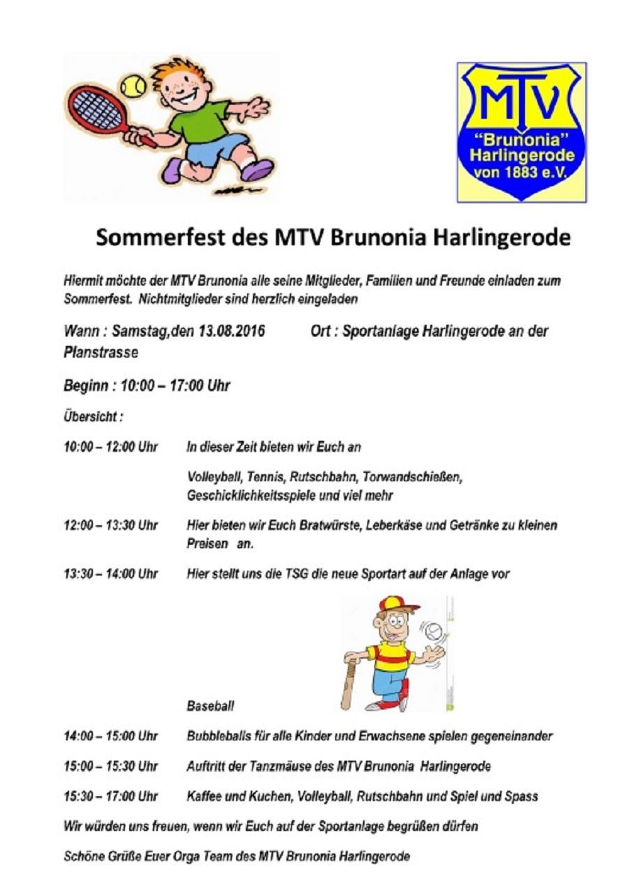 Einladung zum MTV-Sommerfest 2016