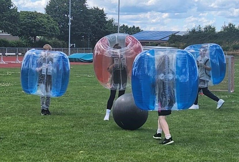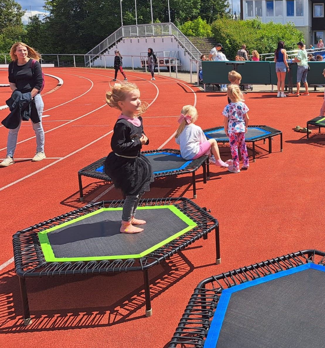 Die großen und kleinen Gäste konnten sich auch an verschiedenen Spiel- und Sportstationen versuchen, beispielsweise in große Bubble-Balls schlüpfen oder sich einmal unter Anleitung auf einem Trampolin austoben. Für jede Sportart standen Übungsleiter bereit, um zu zeigen, wie es geht.